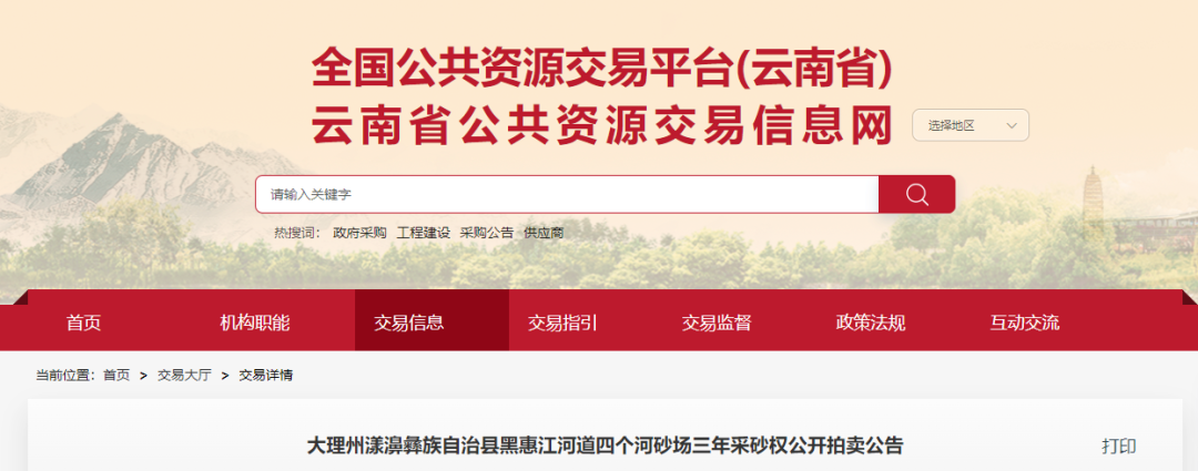 將于2022年11月10日14:30對漾濞彝族自治縣黑惠江河道瓦泥午河砂場、岔河砂場、花開早河砂場、阿列路河砂場四個砂場三年采砂權面向社會依法分別進行公開拍賣,相關事宜公告如下: