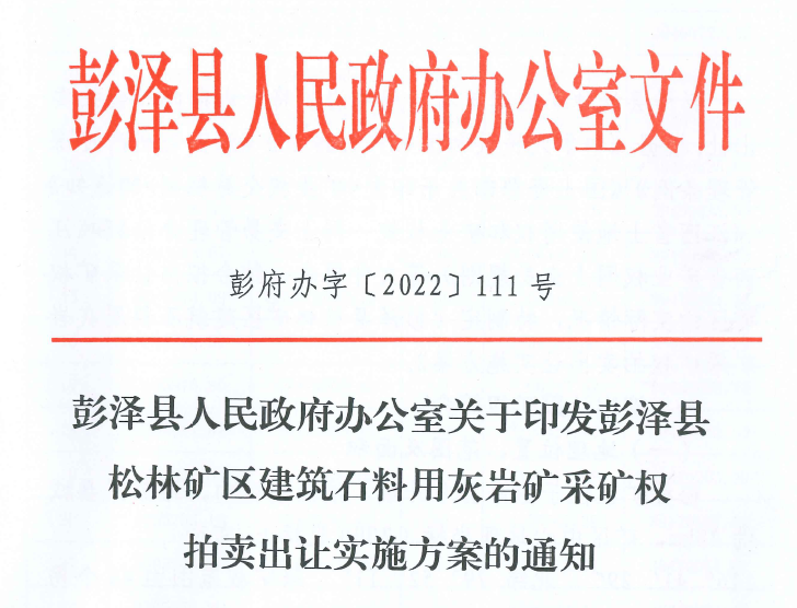項目的競買申請人,視為對《彭澤縣松林礦區建筑石料用灰巖礦采礦權拍賣出讓實施方案》(彭府辦字〔2022〕111號文)所有條款完全響應。