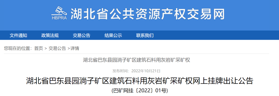 (四)其他有關事宜詳見湖北省巴東縣園淌子礦區建筑石料用灰巖礦采礦權網上掛牌出讓競買須知等出讓文件。出讓文件如有變更,將發布變更或補充公告。
