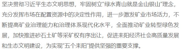 (四)綠色礦山建設。競得人應嚴格按照湖南省綠色礦山標準要求進行規劃、設計、建設和運營管理,須在投產一年后三個月內完成綠色礦山自評和申報,列入省級綠色礦山建設名錄庫。