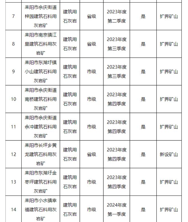 按照砂石土礦采礦權出讓流程,區分采礦權發證權限,礦產儲量在1000萬噸以上和1000萬噸以下的礦山,分別按省級、衡陽市級出讓流程組織開展工作。