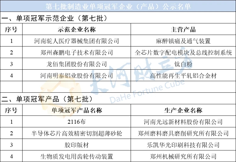 10月25日消息,據河南省工業和信息化廳,工業和信息化部、中國工業經濟聯合會近日組織開展了第七批制造業單項冠軍企業(產品)培育遴選和第一批、第四批制造業單項冠軍企業(產品)復核工作,并已完成相關審核。