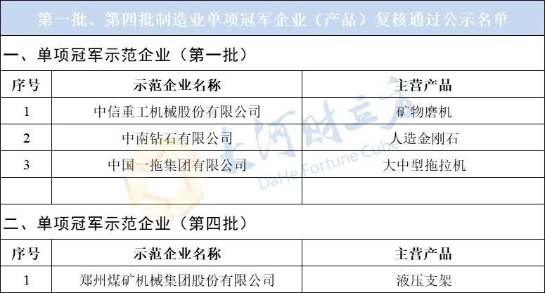 此外,中信重工機械股份有限公司、中南鉆石有限公司、中國一拖集團有限公司通過第一批制造業單項冠軍企業復核,鄭州