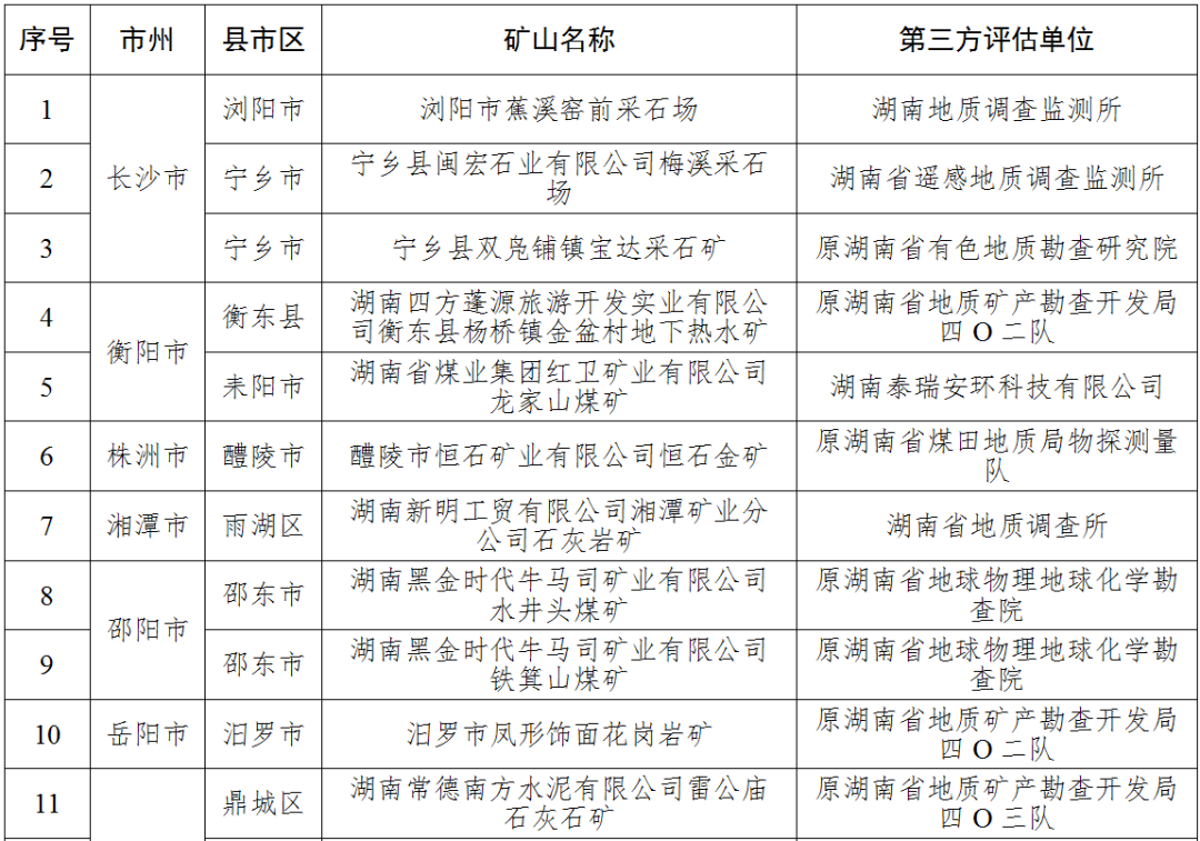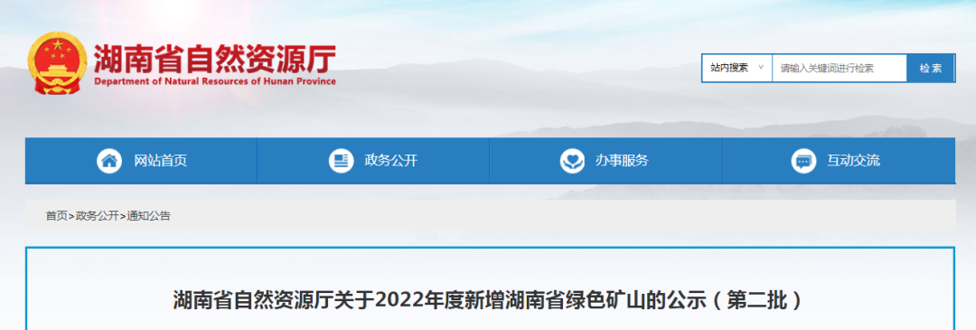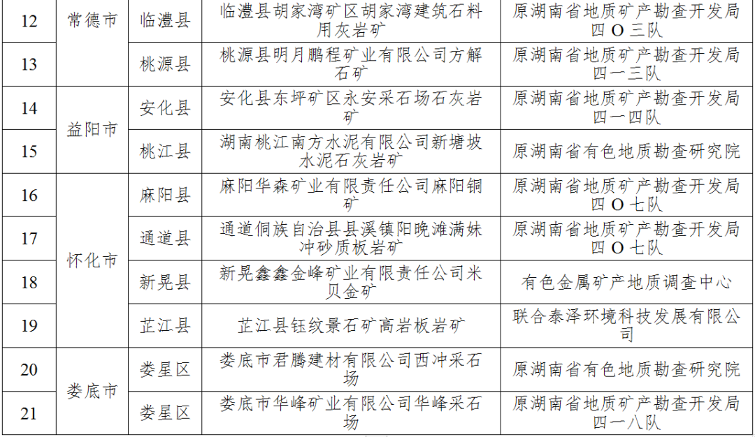獲悉,湖南省自然資源廳發布關于2022年度新增湖南省綠色礦山的公示,將長沙、衡陽、株洲、湘潭、邵陽、岳陽、常德、益陽、懷化、婁底10個市上報的瀏陽市蕉溪窯前采石場等21家省級綠色礦山推薦名單(詳見附件)予以公示。