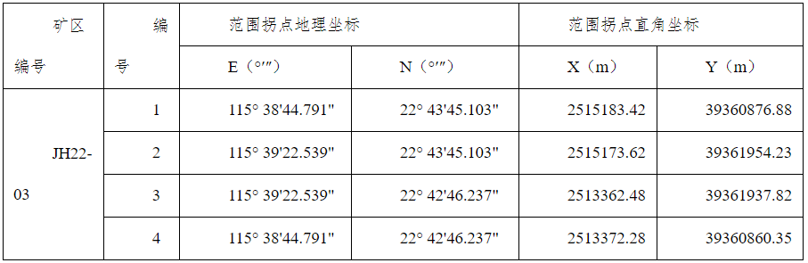 汕尾市管轄海域JH22-03區塊界址點坐標表