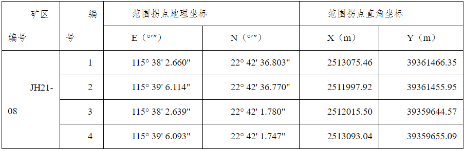 汕尾市管轄海域JH21-08區塊界址點坐標表