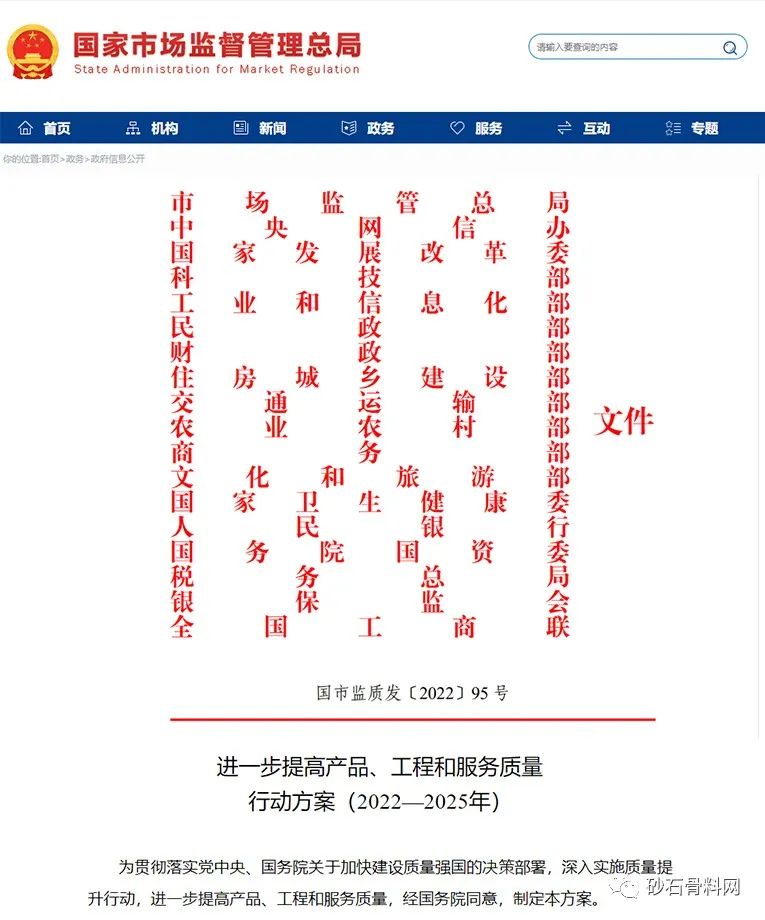 11月10日,經國務院同意,市場監管局、國家發改委、工信部、科技部、住建部等18部門聯合印發《進一步提高產品、工程和服務質量行動方案(2022—2025年)》(以下簡稱《方案》),將從水泥、混凝土等建材原材料源頭提升產品質量,以推動工業品質量穩步向中高端邁進,建筑品質和使用功能不斷提高。