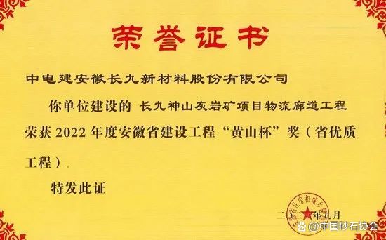 長九廊道工程輸送砂石骨料1億噸,獲“黃山杯”工程質(zhì)量最高獎!