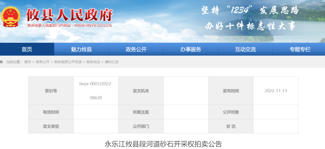 湖南省株洲市攸縣水利局發布永樂江攸縣段河道砂石開采權拍賣公告,根據出讓公告,出讓永樂江攸縣段河道砂石開采權,可采砂石量約為181.51萬噸,起拍價為13142萬元 ,出讓期限為5年,自出讓合同生效之日起算起,若買受人在出讓期限內砂石開采量提前達到本次出讓砂石開采總量,則采砂權出讓期限提前終止。