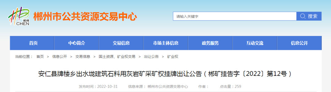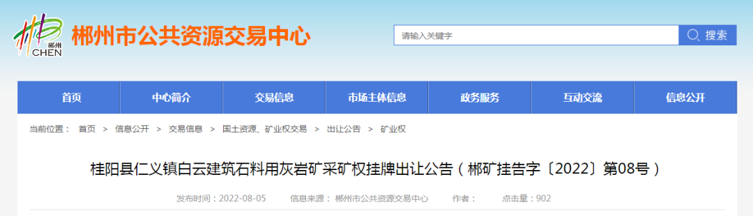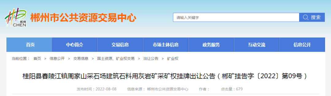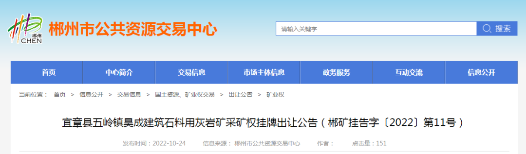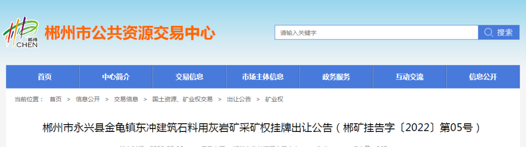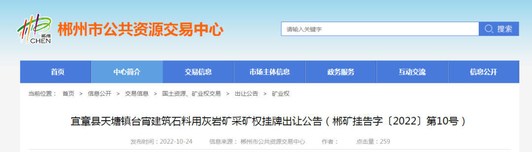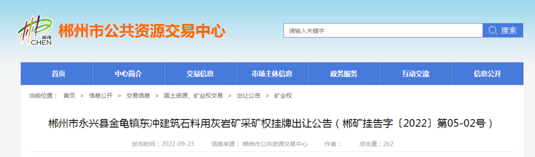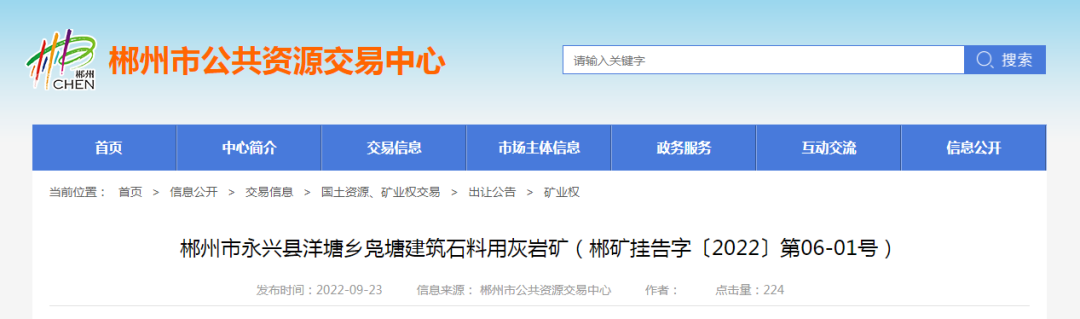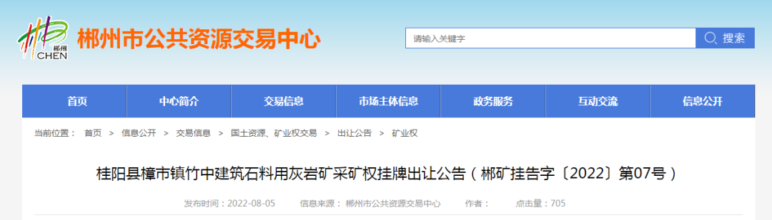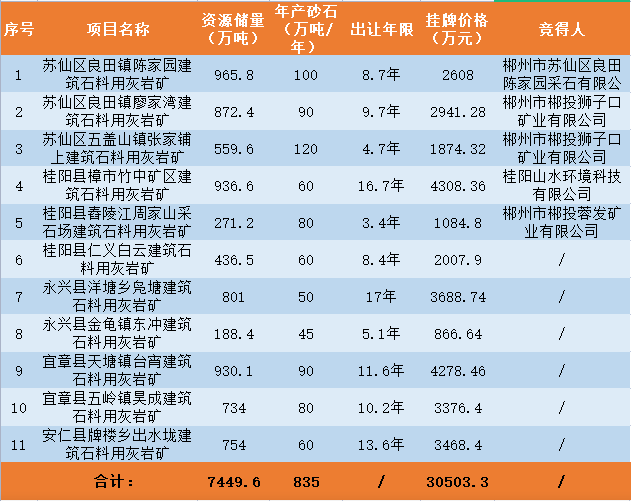 礦山。11宗礦權可采資源儲量共計7449.6萬噸,起始價共計超3億。合計資源儲量,新增年產能835萬噸。11宗礦權均由郴州市自然資源和規劃局掛牌,其中5家已公示出讓結果。