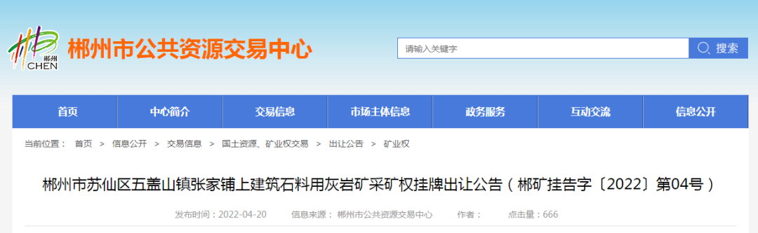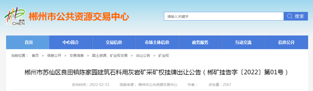 競得人:郴州市蘇仙區良田陳家園采石有限公司