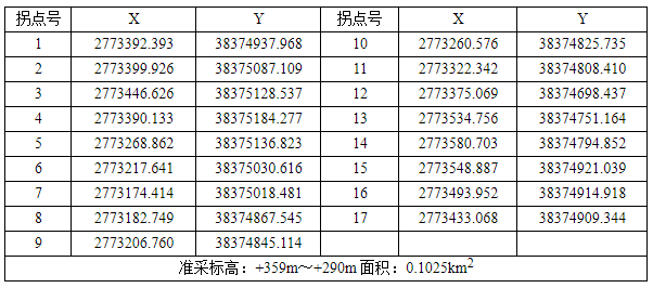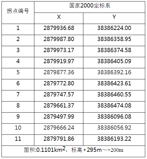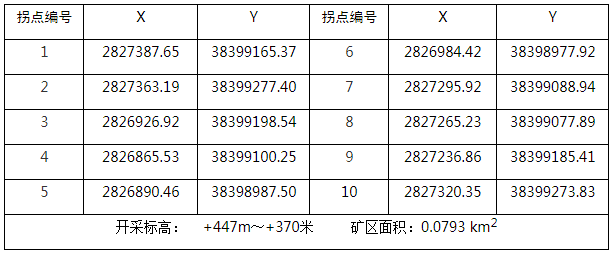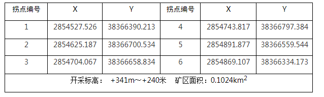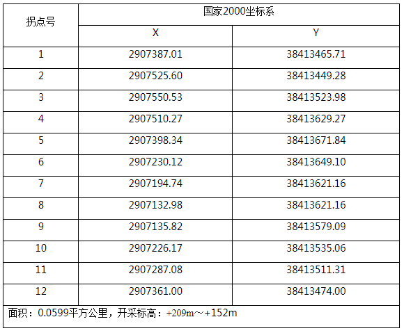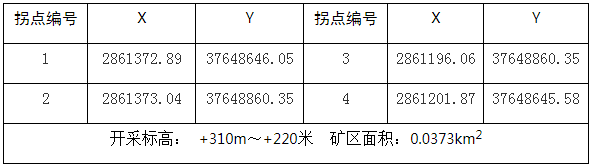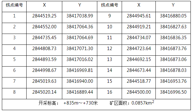 采礦權范圍(2000國家大地坐標):