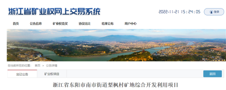 據了解,浙江近期已密集放出多宗礦權。據統計,自2022年10月31日至11月8日,浙江礦業權網上交易系統已連續發布了5宗建筑用石料采礦權出讓公告,出讓的