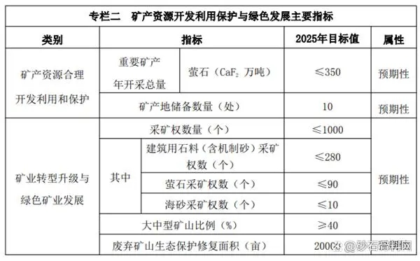 《規劃》要求,到2025年,礦山規模化集約化程度明顯提高,全省采礦權總數控制在1000個以內,小型礦山數量明顯減少,大中型礦山占比提高到40%以上。同時構建礦產資源開采回采率、