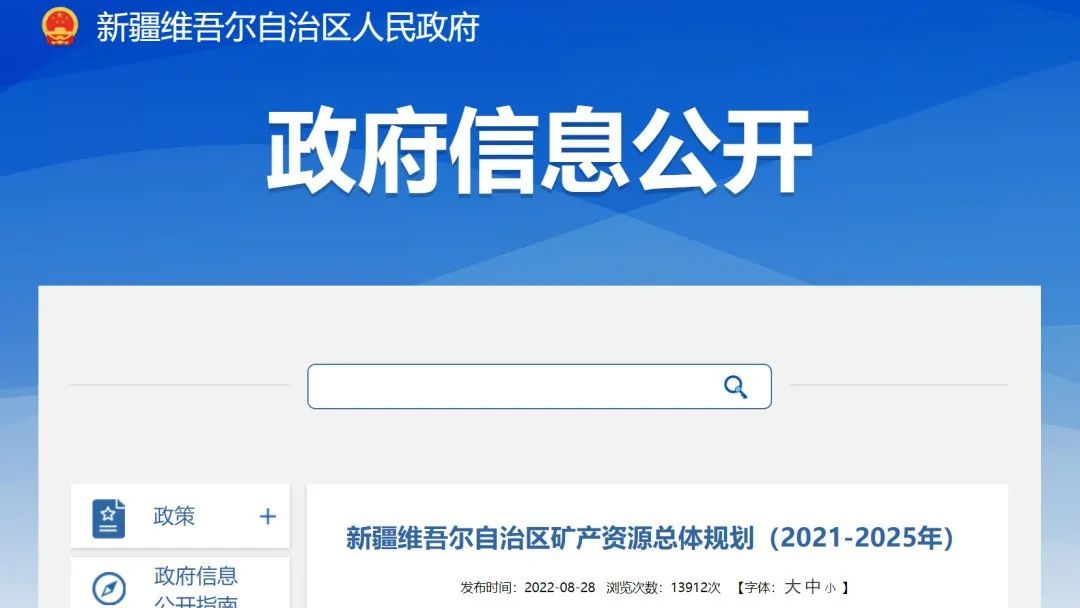 8月28日,新疆維吾爾自治區印發《新疆維吾爾自治區礦產資源總體規劃(2021-2025年)》。全區大中型礦山的比例達40%以上,壓減砂石土等小型礦山數。