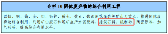 在集中開采區內,積極推動建設儲量規模1500萬噸以上、生產規模100萬噸/年以上的礦山,促進砂石資源規模開發。 在保證產品質量和生態安全的前提下,鼓勵利用礦山尾礦與廢石生產機制砂,節約資源,提高礦山固體廢物綜合利用水平。