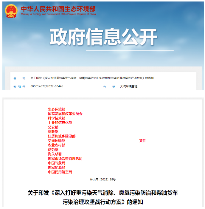 2022年11月14日,生態環境部、國家發展改革委、科技部、工業和信息化部、公安部、財政部、住房和城鄉建設部、交通運輸部、農業農村部、商務部、海關總署、市場監管總局、氣象局、國家能源局、民航局等十五部門聯合發布《深入打好重污染天氣消除、臭氧污染防治和柴油貨車污染治理攻堅戰行動方案》(以下簡稱《方案》),《方案》中看到,其明確治理的重點,聚焦在建材等行業和居民取暖、柴油貨車、秸稈焚燒等領域,全面提升污染治理水平。