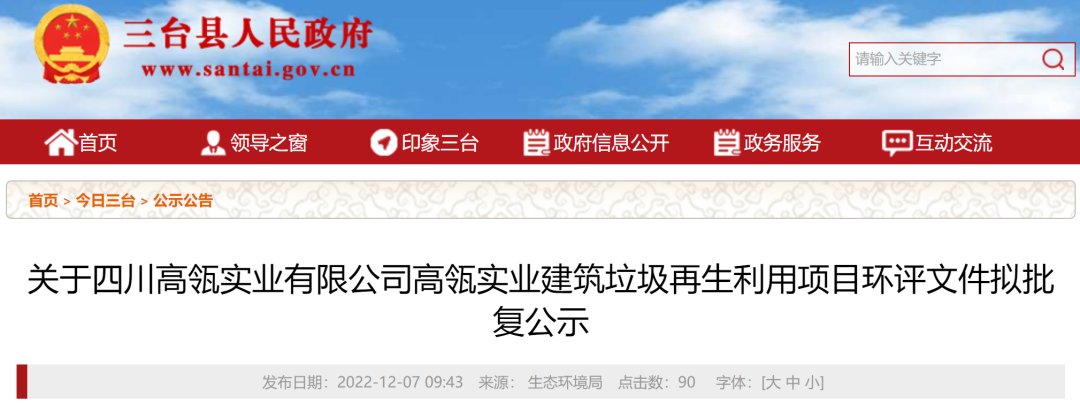根據建設項目環境影響評價審批程序的有關規定,經審查,我局擬對四川高瓴實業有限公司高瓴實業建筑垃圾再生利用項目環境影響報告表作出審批意見。為保證此次審查工作的嚴肅性和公正性,現將擬作出審批意見的環境影響評價文件基本情況予以公示,公示期為2022年12月6日-12月12日(5個工作日)。