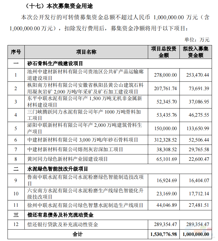 此外,10月底,天山股份發(fā)布公告,擬募資100億用于砂石、水泥等項(xiàng)目建設(shè),其中62億用于7個千萬噸砂石骨料項(xiàng)目建設(shè)。從公告中看到,8個砂石骨料項(xiàng)目總投資額超115億元,項(xiàng)目位于河南、山東、安徽等省份。
