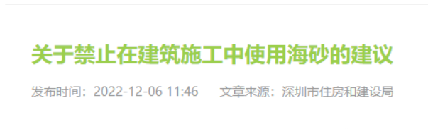 近年來,深圳住建局依據相關標準和規范,每年定期組織開展房屋市政工程預拌混凝土企業專項檢查,治理違規使用海砂、建筑材料打假等混凝土質量專項行動。在嚴格建筑用砂監管的前提之下,淡化海砂作為當前深圳市的建筑用砂的來源是安全且可控的。