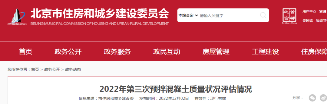 2022年6月至2022年8月,北京市住房城鄉建設委按照《關于進一步加強預拌混凝土質量管理的通知》(京建法〔2016〕14號)要求,委托第三方機構開展了2022年第三次預拌混凝土質量狀況評估工作,對全市正常生產的預拌混凝土企業進行了評估檢查。根據評估檢查結果: