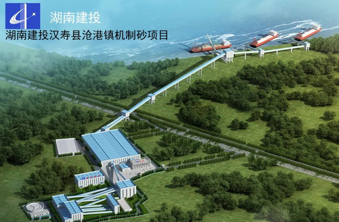 漢壽縣滄港鎮小凡洲砂石集散中心建設項目是湖南建投集團在漢壽投資的機制砂基地的重要配套工程。項目共布置3個2000噸級水運泊位,2個卸船泊位,1個裝船泊位,與后方陸域封閉堆場通過一條全封閉的皮帶廊道連接,設計吞吐量4000噸/小時,總投資約1億元。