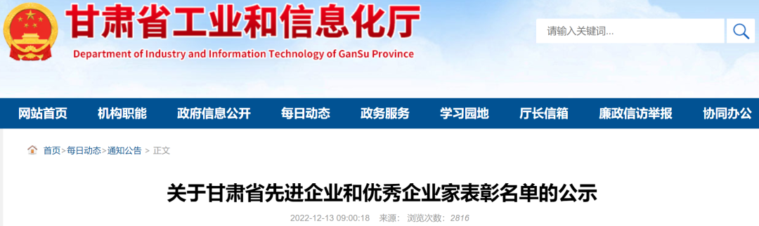 近日,甘肅省工信廳公布甘肅省先進(jìn)企業(yè)和優(yōu)秀企業(yè)家表彰名單公示,此項(xiàng)工作,是根據(jù)省工信廳、省政府國(guó)資委和省人社廳《關(guān)于開(kāi)展甘肅省先進(jìn)企業(yè)和優(yōu)秀企業(yè)家評(píng)選表彰工作的通知》,按照自下而上、逐級(jí)推薦、差額評(píng)選、民主擇優(yōu)的方式,經(jīng)省先進(jìn)企業(yè)和優(yōu)秀企業(yè)家評(píng)審委員會(huì)評(píng)審,省先進(jìn)企業(yè)和優(yōu)秀企業(yè)家評(píng)選表彰活動(dòng)領(lǐng)導(dǎo)小組審核,省政府常務(wù)會(huì)議審議,擬表彰100戶(hù)企業(yè)為甘肅省先進(jìn)企業(yè)(其中突出貢獻(xiàn)獎(jiǎng)32戶(hù)、貢獻(xiàn)獎(jiǎng)68戶(hù)),55名同志為甘肅省優(yōu)秀企業(yè)家。根據(jù)名單甘肅建投獲評(píng)甘肅省先進(jìn)企業(yè)(突出貢獻(xiàn)獎(jiǎng))。