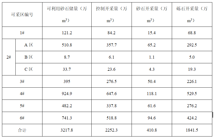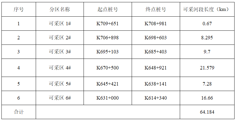 本次規劃河段共規劃了8個砂場,其中2#可采區布置3個采砂場。可采區砂場范圍及控制點坐標見表6.2-2~9,坐標采用2000國家大地坐標系,高程采用國家1985黃海高程系統。
