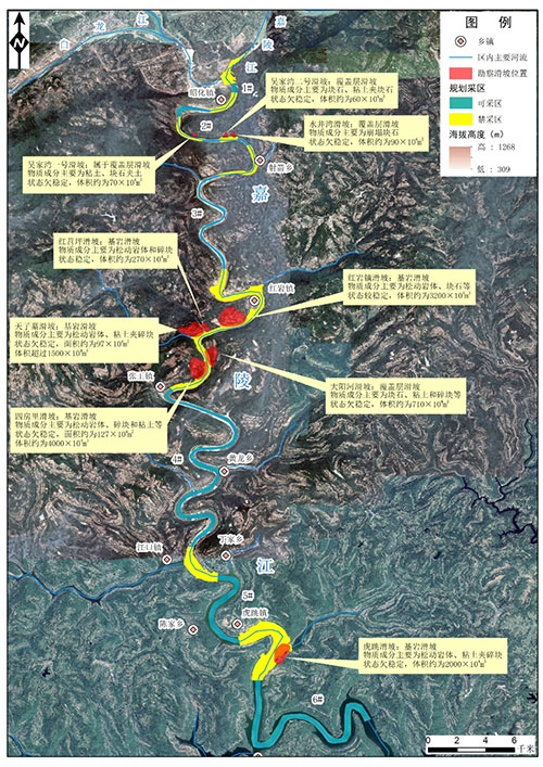 規劃的可采區兩岸多為基巖,僅在兩岸沖溝溝口附近分布有少量覆蓋層,兩岸穩定性較好。但左岸有紅巖港進港公路,右岸有一條在建公路。因粉砂質泥巖抗沖刷能力弱,建議禁止在本段原河道20m范圍內開采砂卵石。