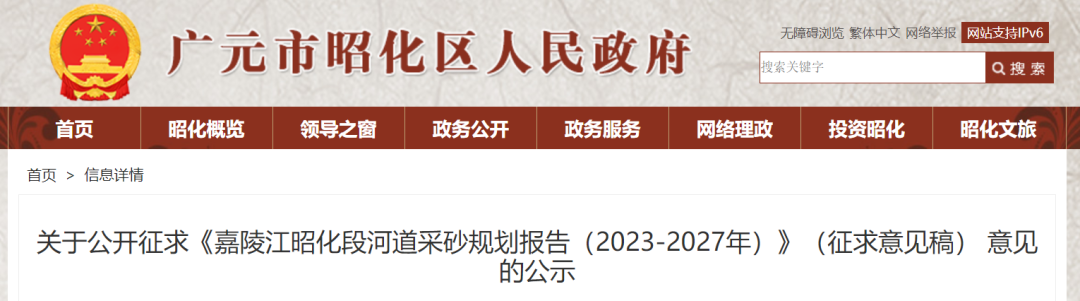 關于公開征求《嘉陵江昭化段河道采砂規劃報告(2023-2027年)》(征求意見稿) 意見的公示