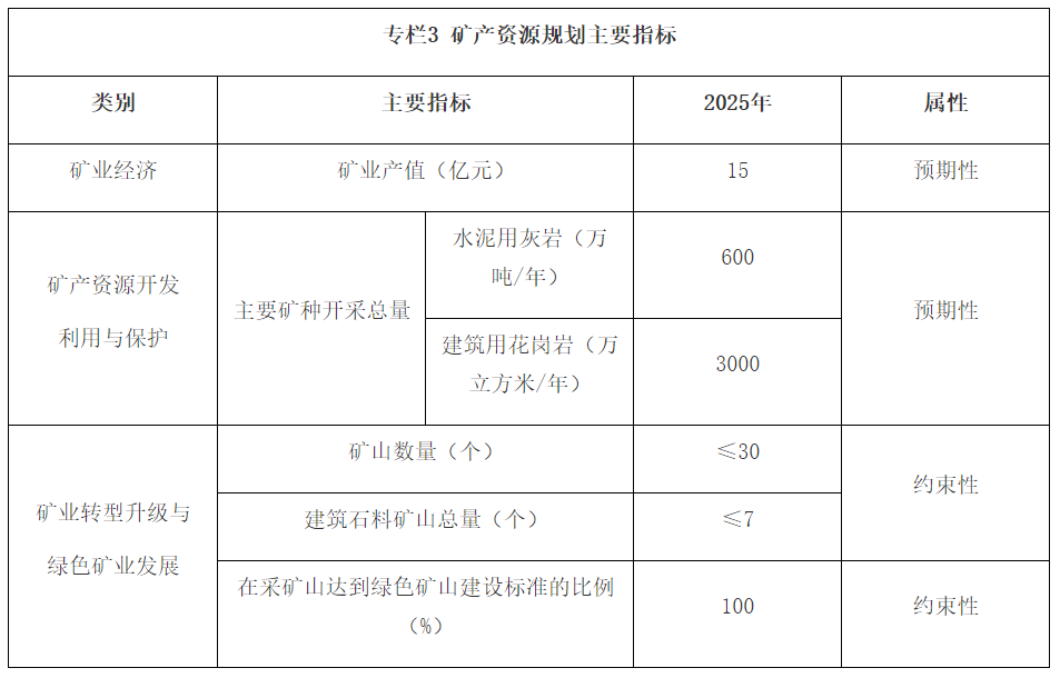 《規劃》指出,到2025年,礦業產值達15億元,水泥用灰巖與建筑用花崗巖的年開采總量分別可達600萬噸/年與3000萬立方米/年。加強資源綜合利用,鼓勵支持新建和現有建筑石料礦山企業增設機