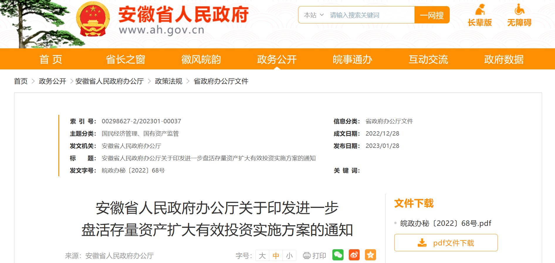 皖政辦秘〔2022〕68號