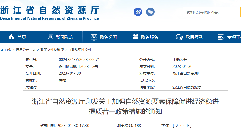 據悉,1月30日,浙江省自然資源廳印發《關于加強自然資源要素保障促進經濟穩進提質若干政策措施的通知》(以下簡稱《通知》。《通知》明確: