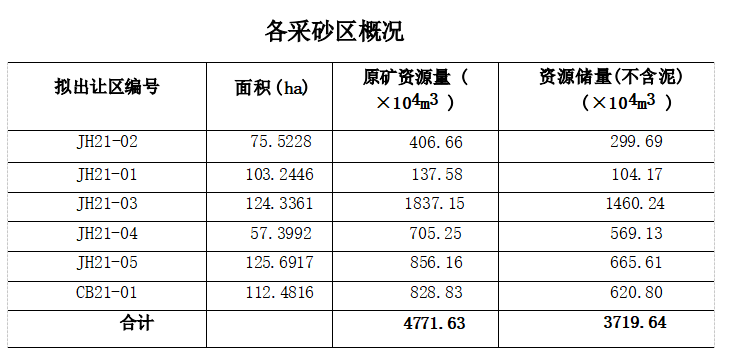 JH21-04區塊,探獲回填用海砂原礦資源量705.25萬方,資源儲量569.13萬方,計劃年采海砂原礦220萬立方米,將產海砂精礦193.6萬方/年,生產服務年限2年8個月;
