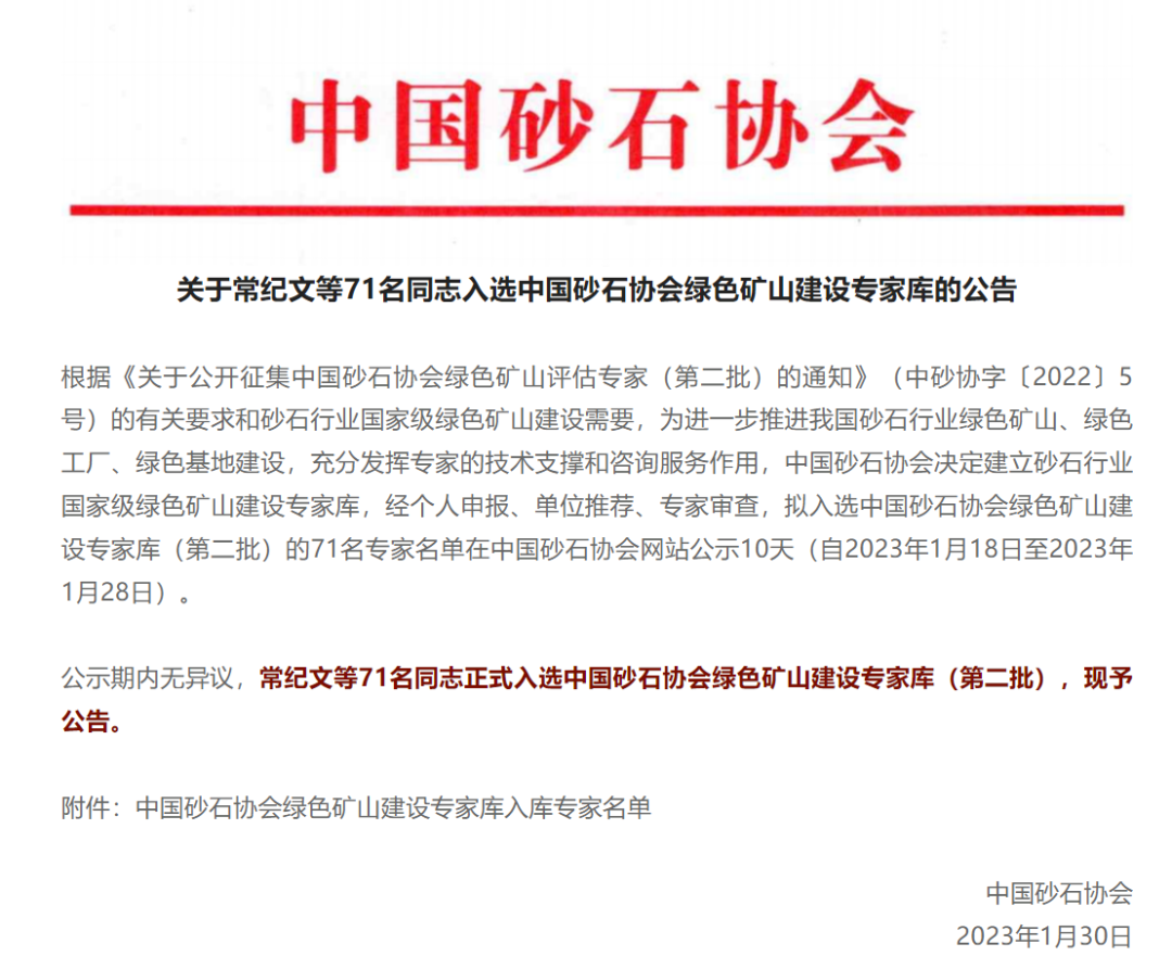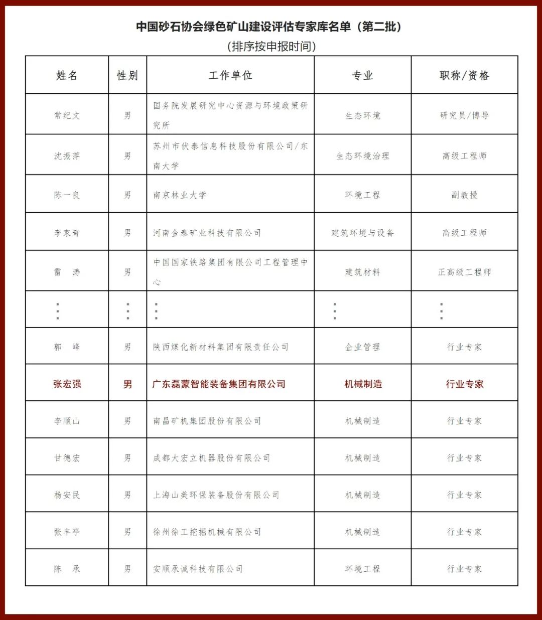 近期,中國砂石協(xié)會發(fā)布了“關(guān)于常紀文等71名同志入選中國砂石協(xié)會綠色礦山建設(shè)專家?guī)斓墓?rdquo;,廣東磊蒙智能裝備集團董事長張宏強作為機械制造行業(yè)專家成功入選!