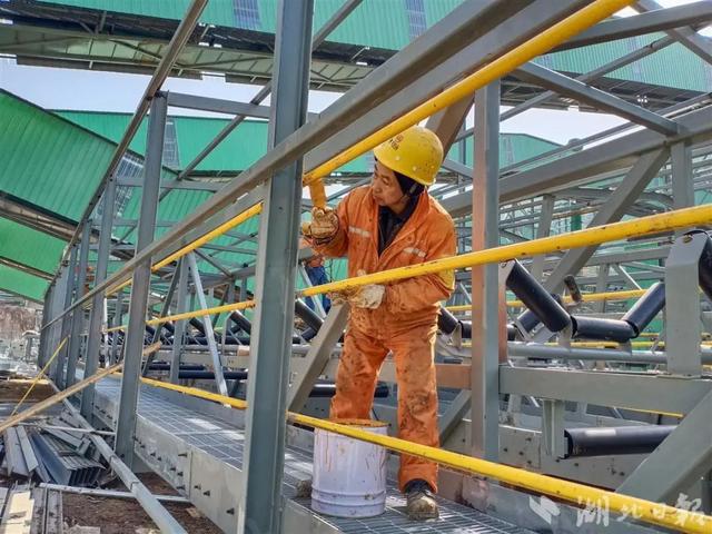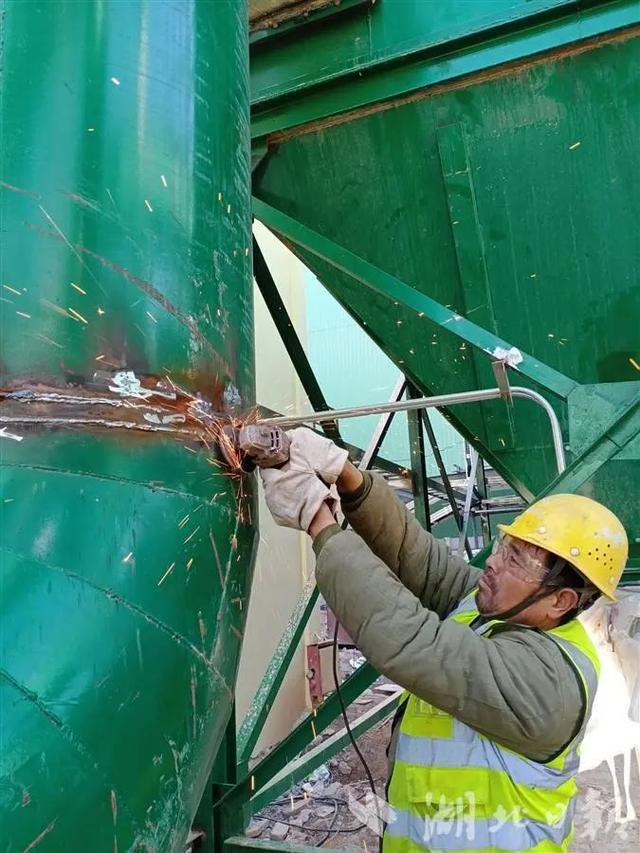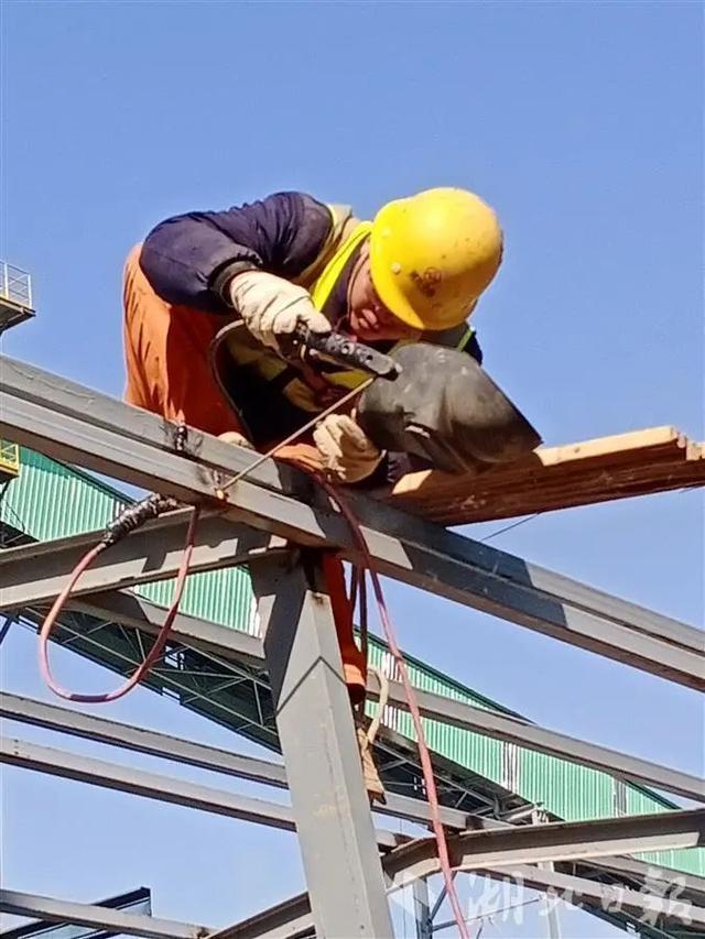 2023年2月3日,走進華新水泥(武穴)工業園投資30億元年產3000萬噸機制砂工地上,工人正在手握焊條,為迎接今年4月份投產忙碌不停,搶抓剎尾工程。