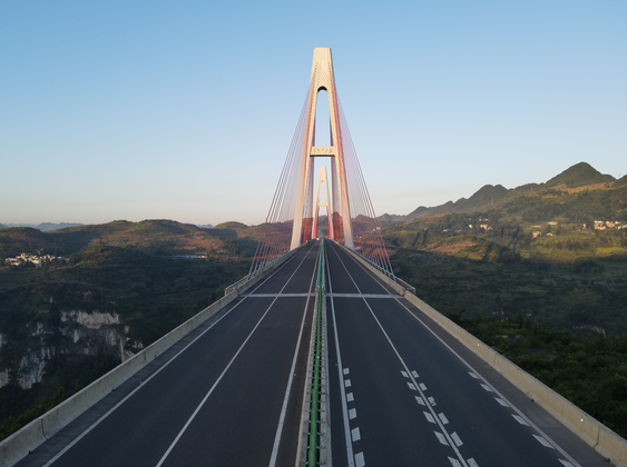 黔西至織金高速公路六沖河特大橋橫跨在黔西市和織金縣分界點的六沖河峽谷之上,全橋設計精巧、造型優美、氣勢恢宏,蔚為壯觀。2013年2月,六沖河特大橋的建成通車,讓黔西市正式進入“高速時代”。而該項目首次將C60山砂混凝土運用于大跨度砼拉橋,為缺少河砂山區因地制宜選擇高強建筑材料提供了新思路。