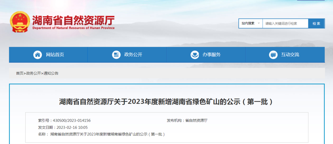 2月16日,湖南省自然資源廳公示2023年度第一批新增湖南省綠色礦山,其中多家砂石生產企業入選。