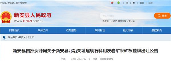 近日,河南省洛陽市發布一宗建筑石料用灰巖礦采礦權掛牌出讓公告,該礦資源儲量超2億噸、年產800萬方,出讓年限25.7年,起始價6億元。掛牌時間2023年3月17日至3月30日,不接受聯合競買。