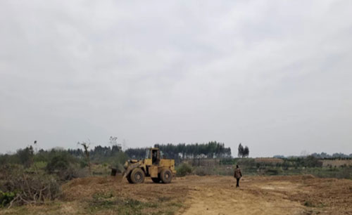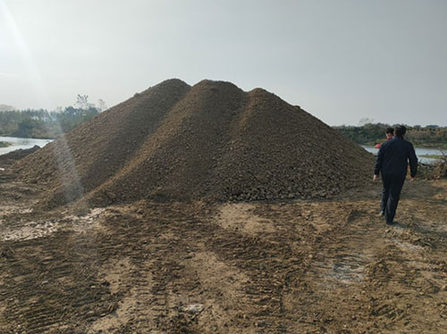 2023年1月6日在香山河城廂鎮夏黃村段發現堆積在河岸的1千多方砂石實景。
