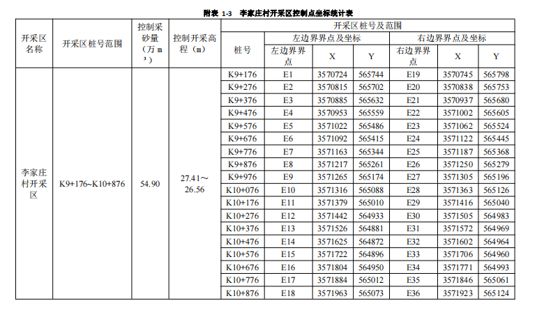 (3)李家莊開采區。位于八里岔鄉李家莊村附近,竹竿河右岸,開采區樁號為 K9+176~K10+876,長1700米,控制開采高程為27.41~26.56米,采砂控制量為54.90 萬立方米。
