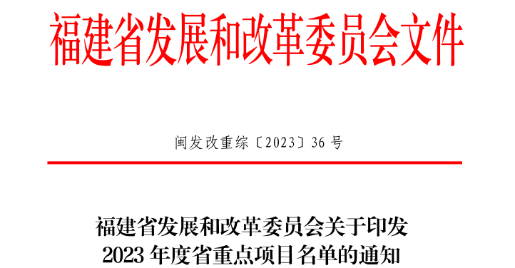 近日,福建省發展和改革委員會發布2023年福建省重點項目名單的通知。通知中指出經福建省政府同意,確定2023年度省重點項目1580個,總投資4.09萬億元,年度計劃投資6480億元。