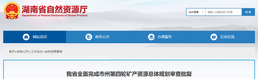據統計,截止目前已有包括福建、浙江、廣東、湖北、湖南、廣西、江蘇、貴州、江西、云南、山東、遼寧、寧夏、河北、甘肅、內蒙、新疆、黑龍江、河南、四川在內的20省及自治區份發布了2021-2025年的礦產資源總體規劃。此次《湖南省市州第四輪礦產資源總體規劃》也是《湖南省礦產資源總體規劃(2021—2025年)》(以下簡稱《規劃》)工作的開展與延伸。