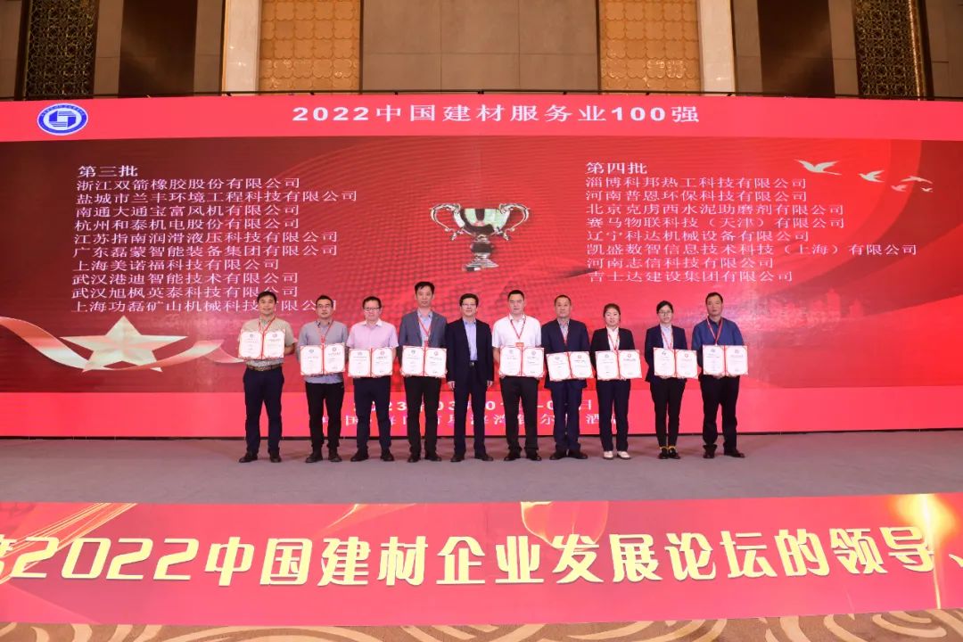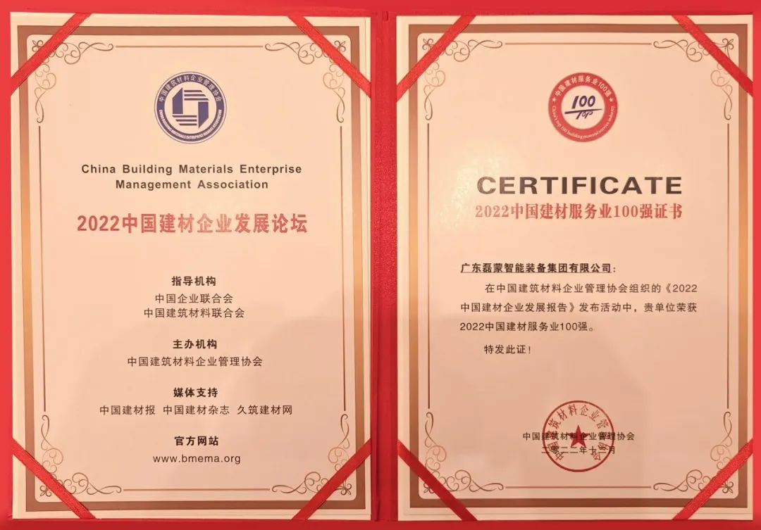 本次峰會(huì)進(jìn)行了隆重的頒獎(jiǎng)儀式,磊蒙集團(tuán)榮獲“2022中國(guó)建材服務(wù)業(yè)100強(qiáng)”稱號(hào)。