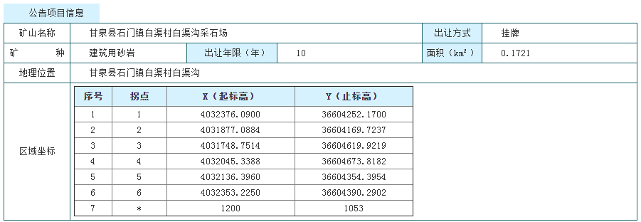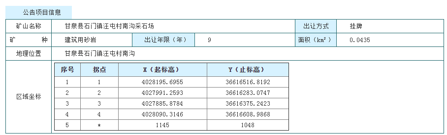 01、甘泉縣石門鎮汪屯村南溝采石場建筑用砂巖礦采礦權