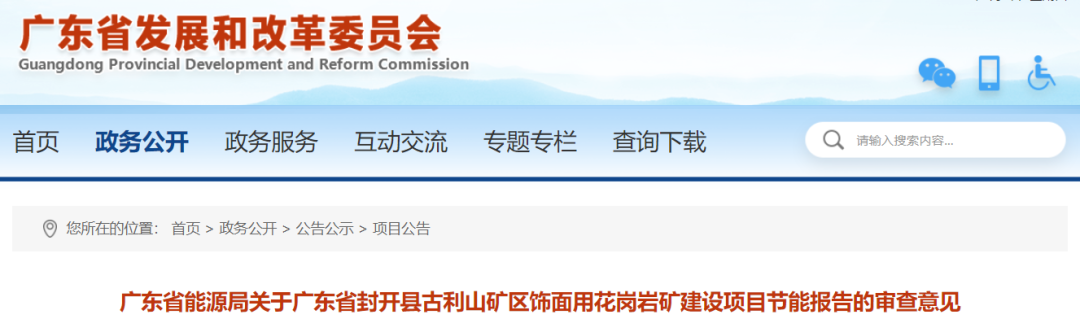 報來《廣東省封開縣古利山礦區飾面用花崗巖礦建設項目節能報告》收悉。根據《固定資產投資項目節能審查辦法》《廣東省固定資產投資項目節能審查實施辦法》的相關要求,我局對該項目節能報告進行了審查,審查意見如下: