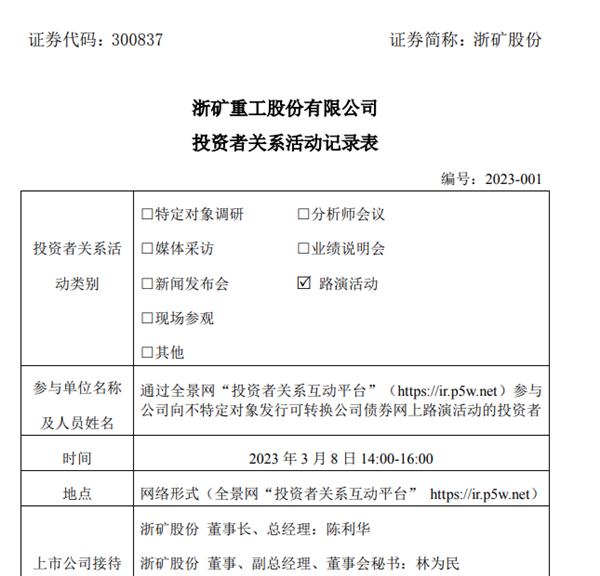 3月8日,浙礦重工在全景網(wǎng)舉行網(wǎng)上路演活動,浙礦重工董事長陳利華、總經(jīng)理林為民等參與活動并答投資者問。陳董表示,在國家經(jīng)濟(jì)穩(wěn)增長的背景下,新、舊基建聯(lián)合發(fā)力支撐經(jīng)濟(jì),隨著“十四五規(guī)劃”和“兩新一重”建設(shè)以及國家適度超前開展基礎(chǔ)設(shè)施投資策略等的實(shí)施,砂石骨料作為基礎(chǔ)設(shè)施建設(shè)用量最大、不可或缺、不可替代的建筑材料,在行業(yè)需求保持穩(wěn)定的前提下,行業(yè)供給側(cè)改革和綠色礦山建設(shè)驅(qū)動了公司業(yè)務(wù)的進(jìn)一步增長。