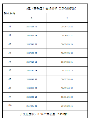 (三)礦區面積:1.1391平方公里(1708畝);(四)開采標高:+334.27~+65米;