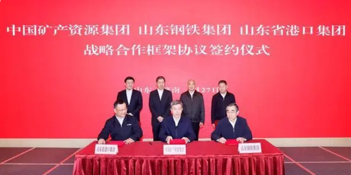 3月27日下午,中國礦產資源集團與山東鋼鐵集團、山東省港口集團戰略合作框架協議簽約儀式在山東大廈舉行。省委書記林武,中國礦產資源集團董事長姚林、總經理郭斌出席。