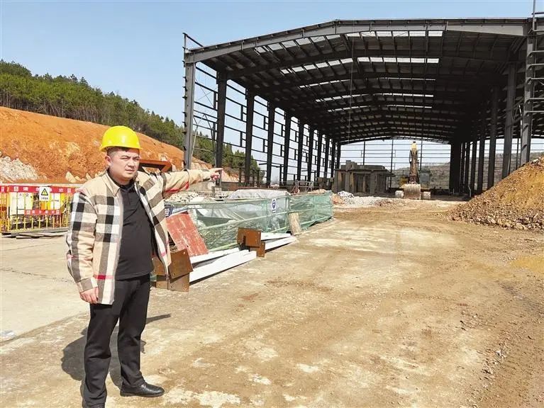 筱啟公司總經(jīng)理助理謝勁介紹正在建設的6號廠房。
